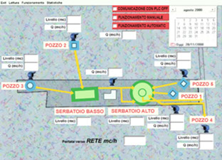 Hardware and software design and realization of an electronic system to monitor and radiocontrol a town aqueduct, optimization of wells water levels and pipes flow rates based on requests from users in different hours
